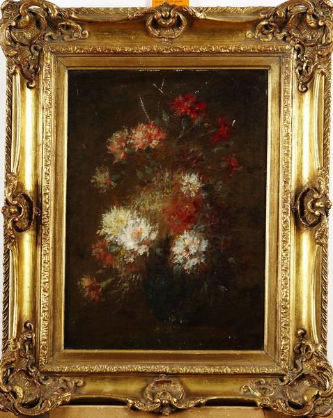 | hennes art: Blomsterstilleben med röda och vita nejlikor | |