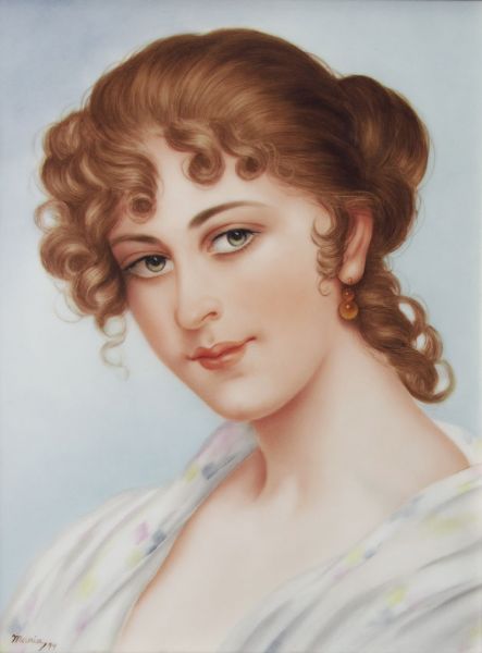 | Portrait of a Woman on porcelain, this piece has special significance as it was the first piece she ever did | |