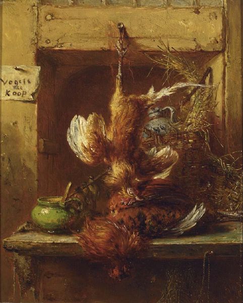 ´VOGELS TE KOOP´, STILL LIFE WITH BIRDS