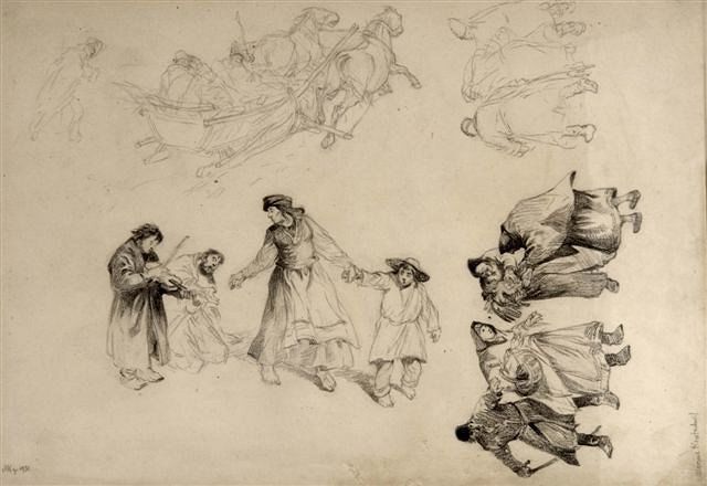 'Begging Musicians' and 'In the market selling chickens'
