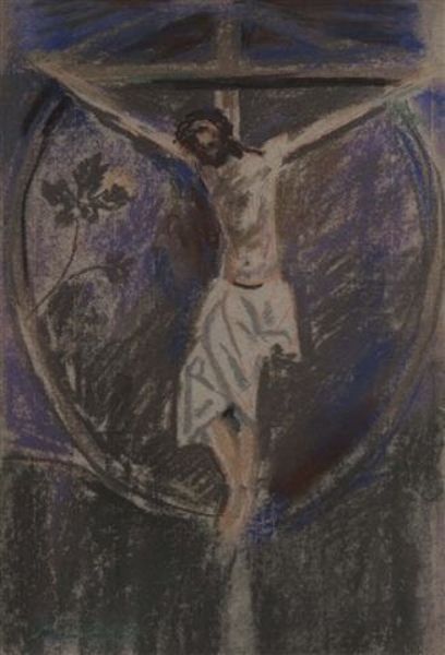 Crucifix, study from church garment in Victoria and Albert Museum