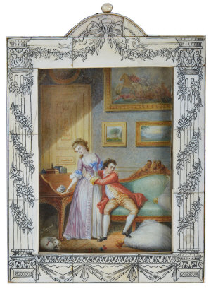 | A miniature painting on ivory depicting a lady & gentleman | |