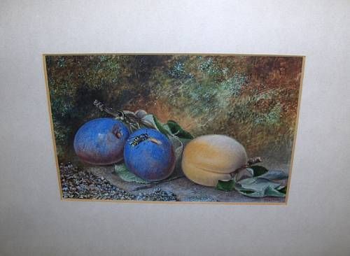 Still life of plums on a bank