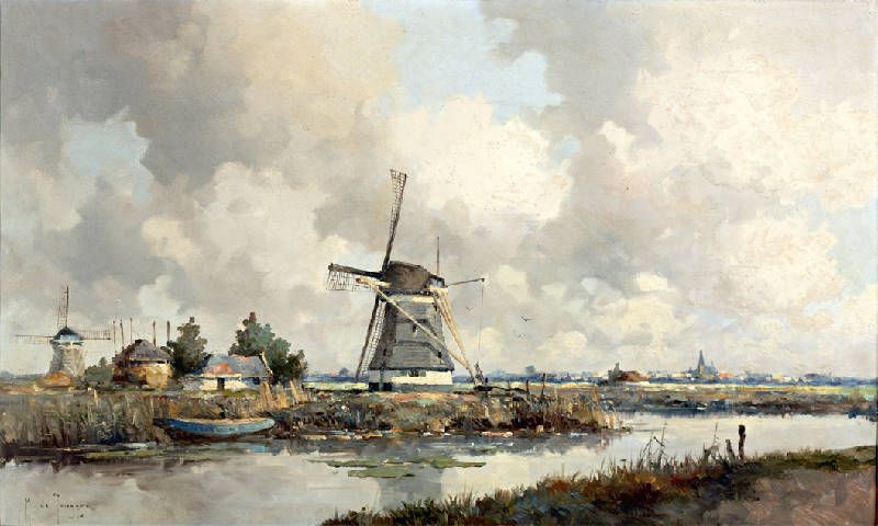Molens in de polder bij Rotterdam