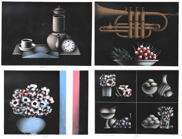 | i) Grandeur Nature 1988, ed 4/85 ii) Le Cafe du Petit Matin 1980, ed 71/85 iii) MIl Nuef 1989, 16/85 iv) Le Quatre Saisons | |