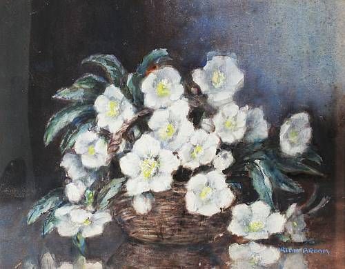 Still life, bowl of hellebore (Christmas Roses)
