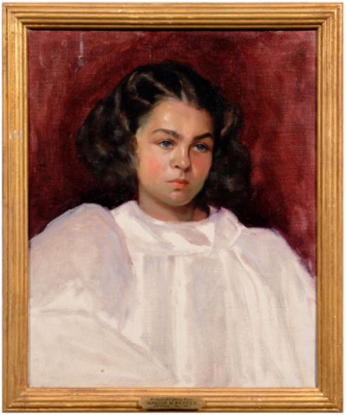 | Restretched, light grime; frame with abrasions, frame plate with artist and title. | |