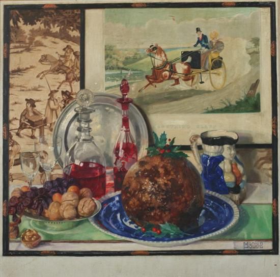 TABLE-TOP STILL LIFE WITH FRUIT, NUTS, WINE AND CHRISTMAS PUDDING