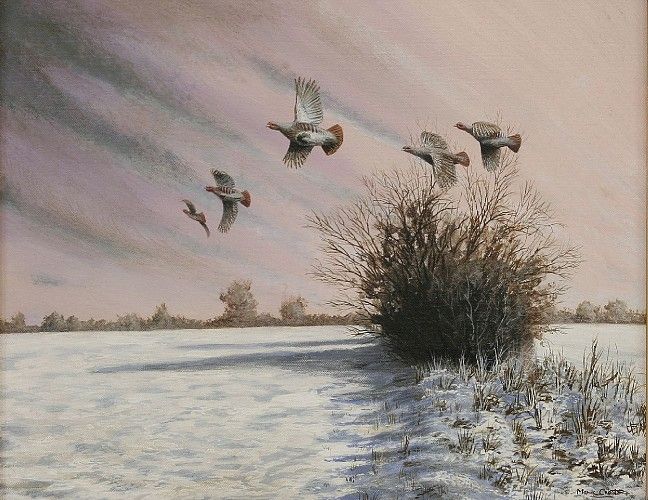 LONG SHADOWS' - PARTRIDGE IN A WINTER LANDSCAPE