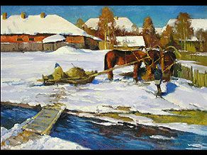WINTERLANDSCHAFT MIT PFERDEGESPANN