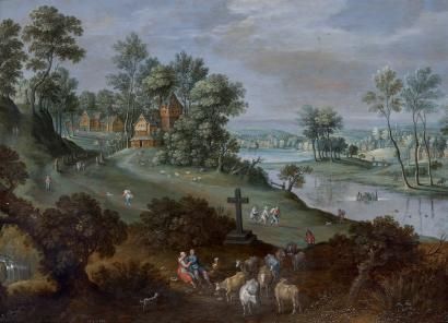 Paysage de rivière avec une scène pastorale