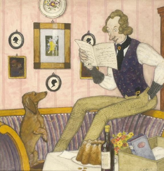 Junger Mann liest seinem Dackel den Geburtstagsbrief vor
