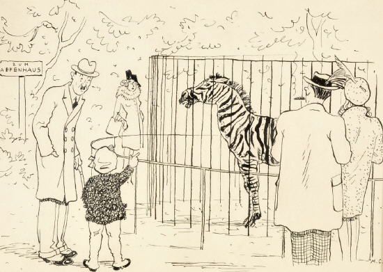 Leute betrachten ein Zebra im Zoo
