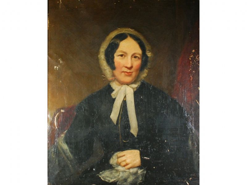 Portrait of a lady wearing a bonnet 'Mary Moss'