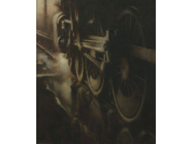 'Water and Steam' Study of steam locomotive wheels and puddles