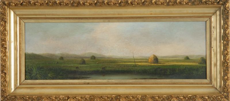 Marsh landscape with haystacks