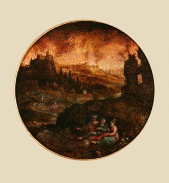 Loth et ses filles avec sur le second plan l´incendie de Sodome
