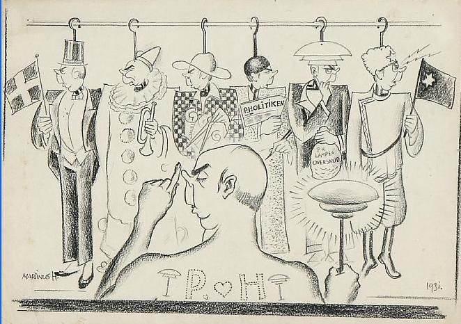 Caricature of Poul Henningsen's work