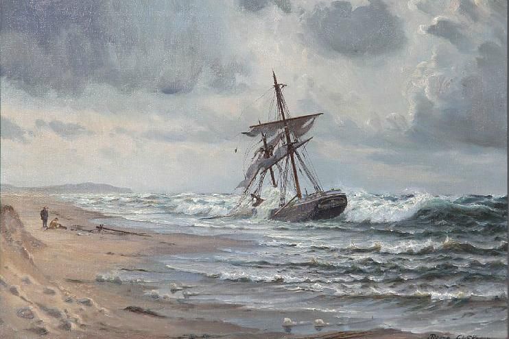 A stranded ship at "Gl. Skagen Beach" in Denmark.