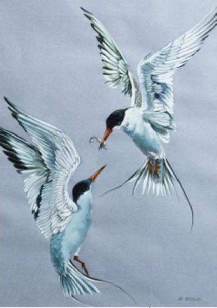 King Fishers in Flight and Head's of Bird and Chick (a pair of works)