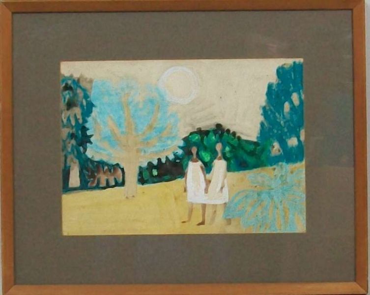 a study of two girls walking in a landscape