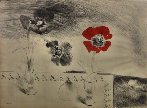 Pencil drawing heightened in red