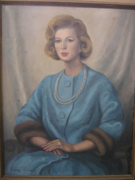 | Portrait of a lady, half length seated, wearing a blue costume and a string of pearls | |