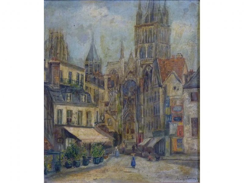 A French street scene with Cathedral