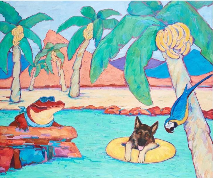 animals in colorful tropical scene
