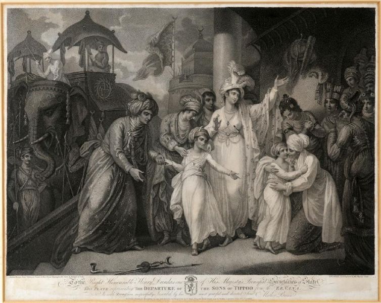 | THE DEPARTURE OF THE SONS OF TIPPOO FROM THE ZENANA; THE DELIVERY OF THE DEFINITIVE TREATY BY THE HOSTAGE PRINCES INTO THE HANDS | |