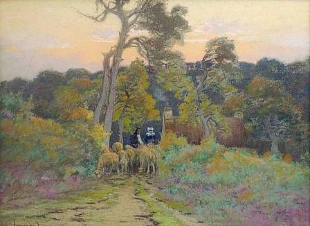 RETOUR DU TROUPEAU EN BRETAGNE AU COUCHER DU SOLEIL