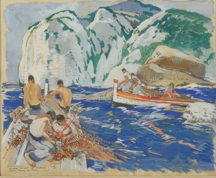 Pecheurs Devant les Calanques, Cassis, Bouches-du, Rhône"
