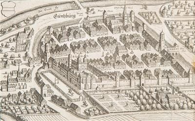 | Günzburg an der Donau aus der Vogelschau mit Pferdeturnierplatz | |