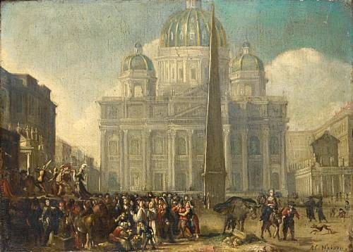 Figures dancing on a stage in the Piazza San Pietro, Rome