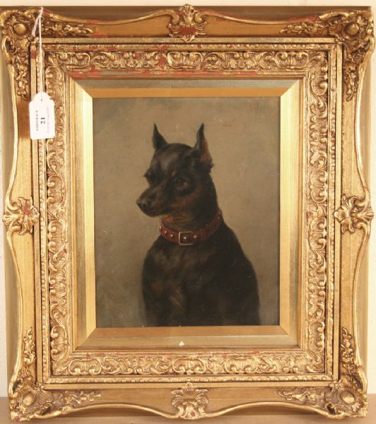 Study of a Pinscher wearing a Leather Collar with Metal Studs