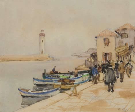 Mediterranean Fishing Wharf with Lighthouse
