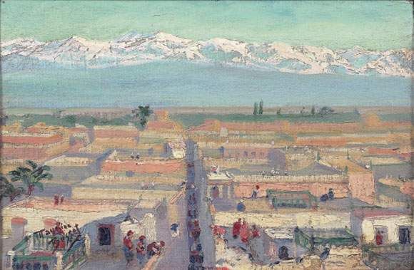 | Ville marocaine, devant les montagnes de l'Atlas | |
