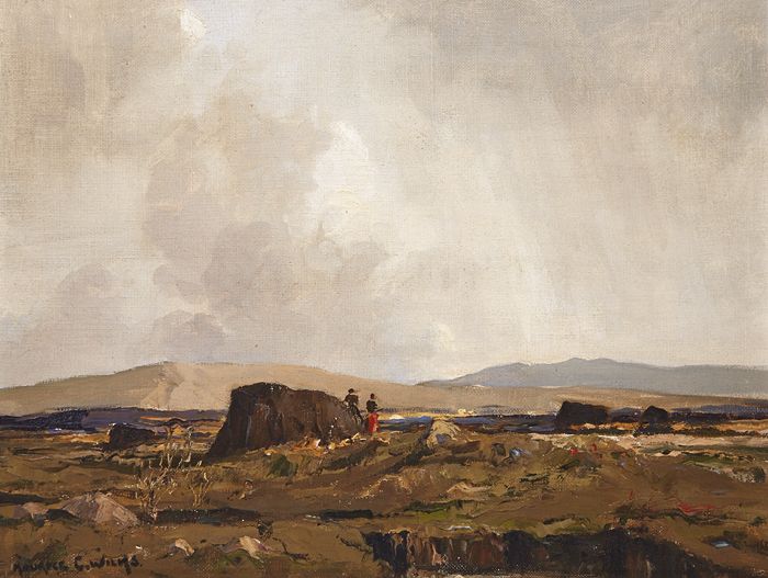 LANDSCAPE WITH TWO FIGURES AND TURF STACKS