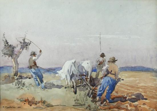 Ploughing with Oxen, Italy