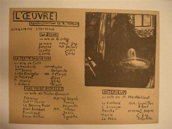 | LA SCÈNE ; LA VÉRITÉ DANS LE VIN, LES PIEDS NICKELÉS ; INTÉRIEUR. Programme pour le Théâtre de l'OEuvre. 1895. | |