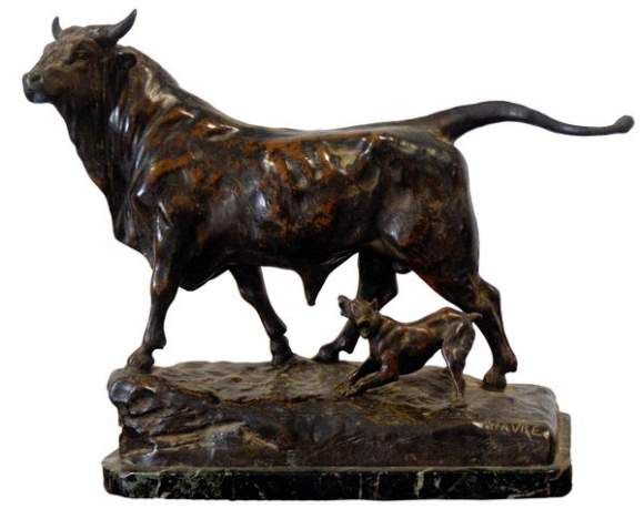Taureau debout et chien