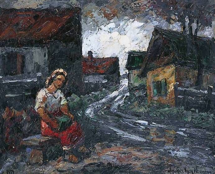 JEUNE FEMME ASSISE AU BORD DU CHEMIN