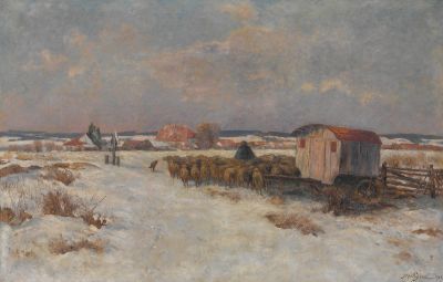 Schäfer im verschneiten Dachauer Moos