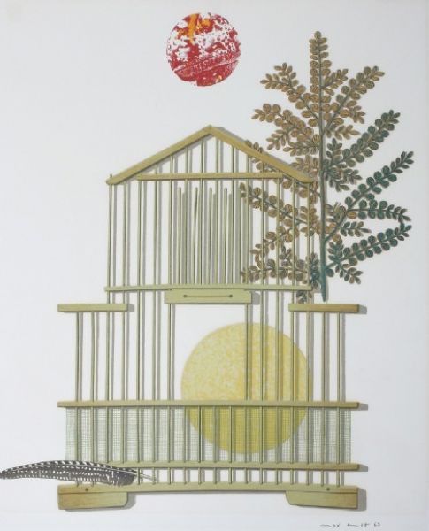 Bird Cage, Feather, Branch and Sun