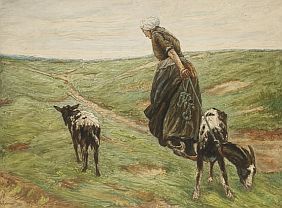Alte Frau mit Ziegen. Wohl 1890s.
