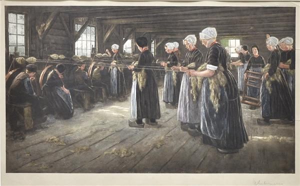 Flachsscheuer in Laren, Flachsspinnerinnen.