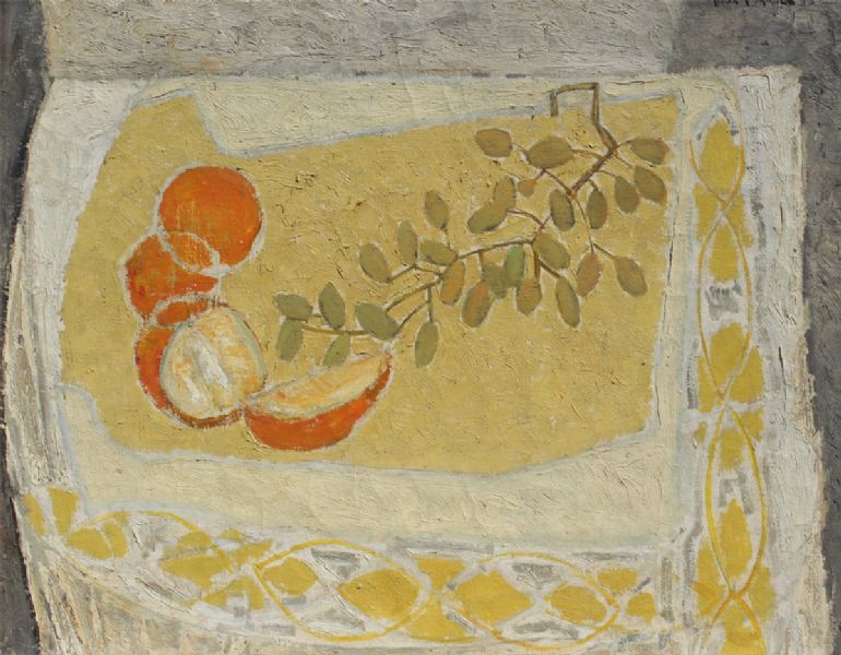 ''Les Raisins Jaunes'', Still Life of Oranges & Grapes on a Table Top