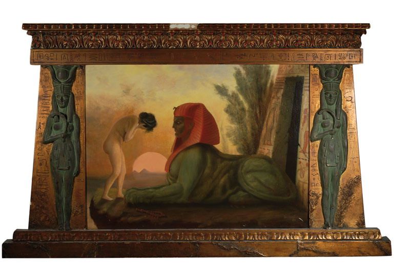 | Maler und Schriftsteller in Dresden, stehender weiblicher Akt vor ägyptischer Sphinx | |