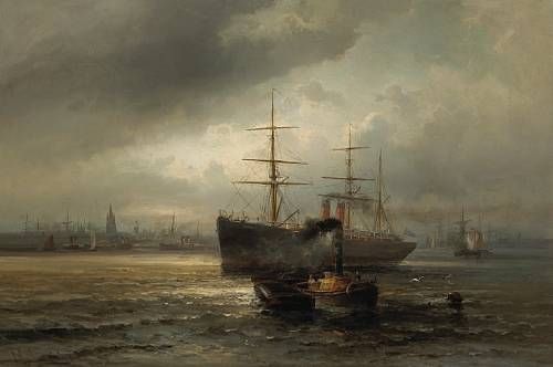 The 'SS Aurania' and a tugboat in Liverpool Harbor