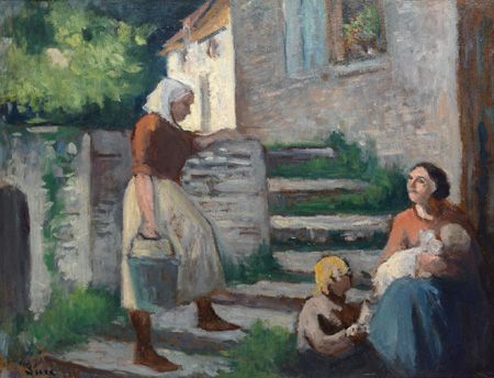 | CONVERSATION DANS L'ESCALIER DE LA CHAUMIERE, ROLLEBOISE, VERS 1929 | |